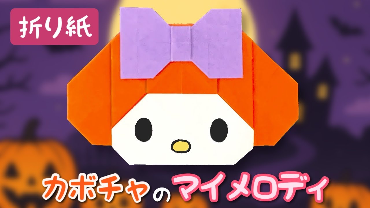 説明文 | カボチャのマイメロディの折り紙の作り方です。カボチャ(ハロウィン)バージョンのマイメロディを作ることができます。リボンを作る場合は2枚の折り紙が必要になります。リボンは折り紙を1/4サイズに切ってから... |
