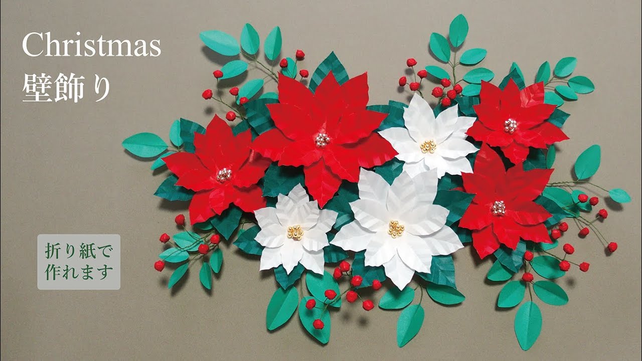 折り紙で簡単に作れるポインセチアの壁飾り – 簡単クラフトちゃんねる